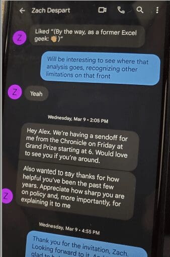 Through an open records request Texas Scorecard sent to Hidalgo and Ellis’ offices, we obtained the following text messages with Despart from this year.