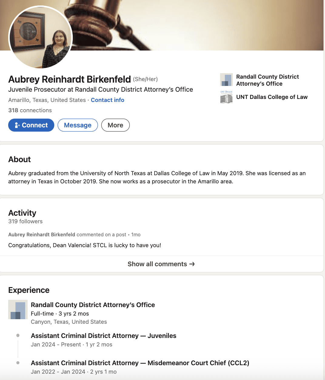Dickson said he has been raising concerns for almost a year that the chief was “compromised” because his daughter-in-law, Aubrey Reinhardt Birkenfeld, is Randall County’s assistant criminal district attorney in charge of juvenile cases and has a long history of pro-abortion activism.