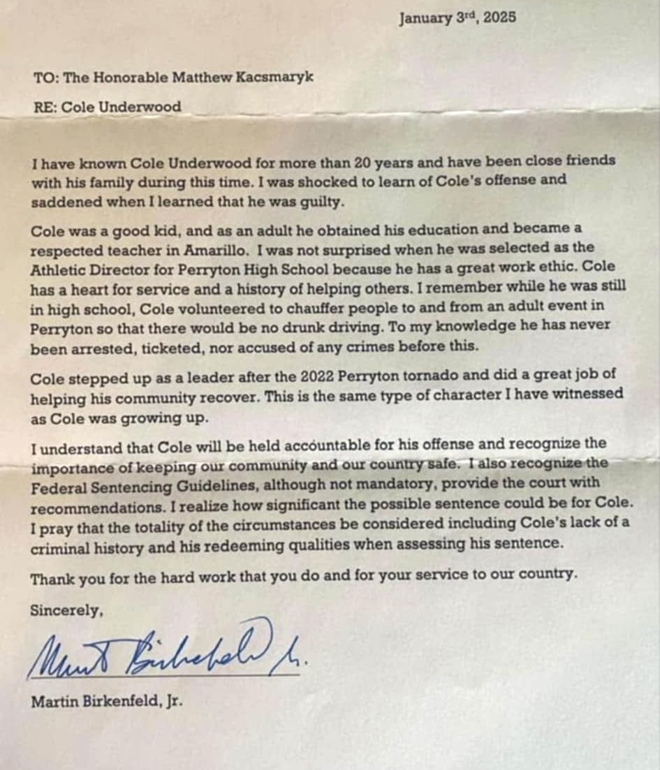 The letter Chief Birkenfeld wrote to Judge Matthew Kacsmaryk, in support of a coach who admitted to having sex with a 15-year-old girl in his school office at least 10 times, says it all. Judge Matthew Kacsmaryk was right when he said, “This is not Romeo and Juliet. This is predator and prey.”