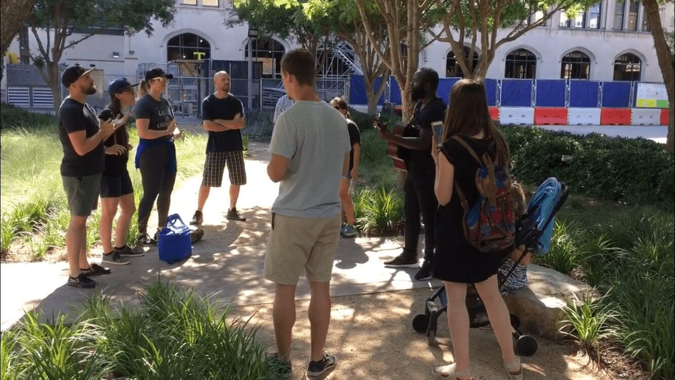 “Hallelujah, Jesus, your name above all names,” sang a man named Jessy, who played a guitar while leading the group in Chris Tomlin’s “How Great is Our God” in front of the old Dallas County Courthouse.
