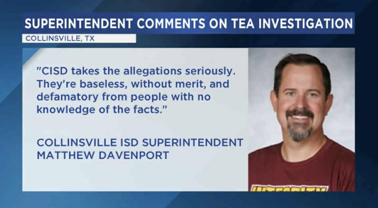 Families learned earlier this month that Collinsville ISD Superintendent Matthew Davenport, Collinsville High School Principal Kim Patterson, and Athletic Director Garrett Patterson are all “under review” by the Texas Education Agency’s Educator Investigations Division.