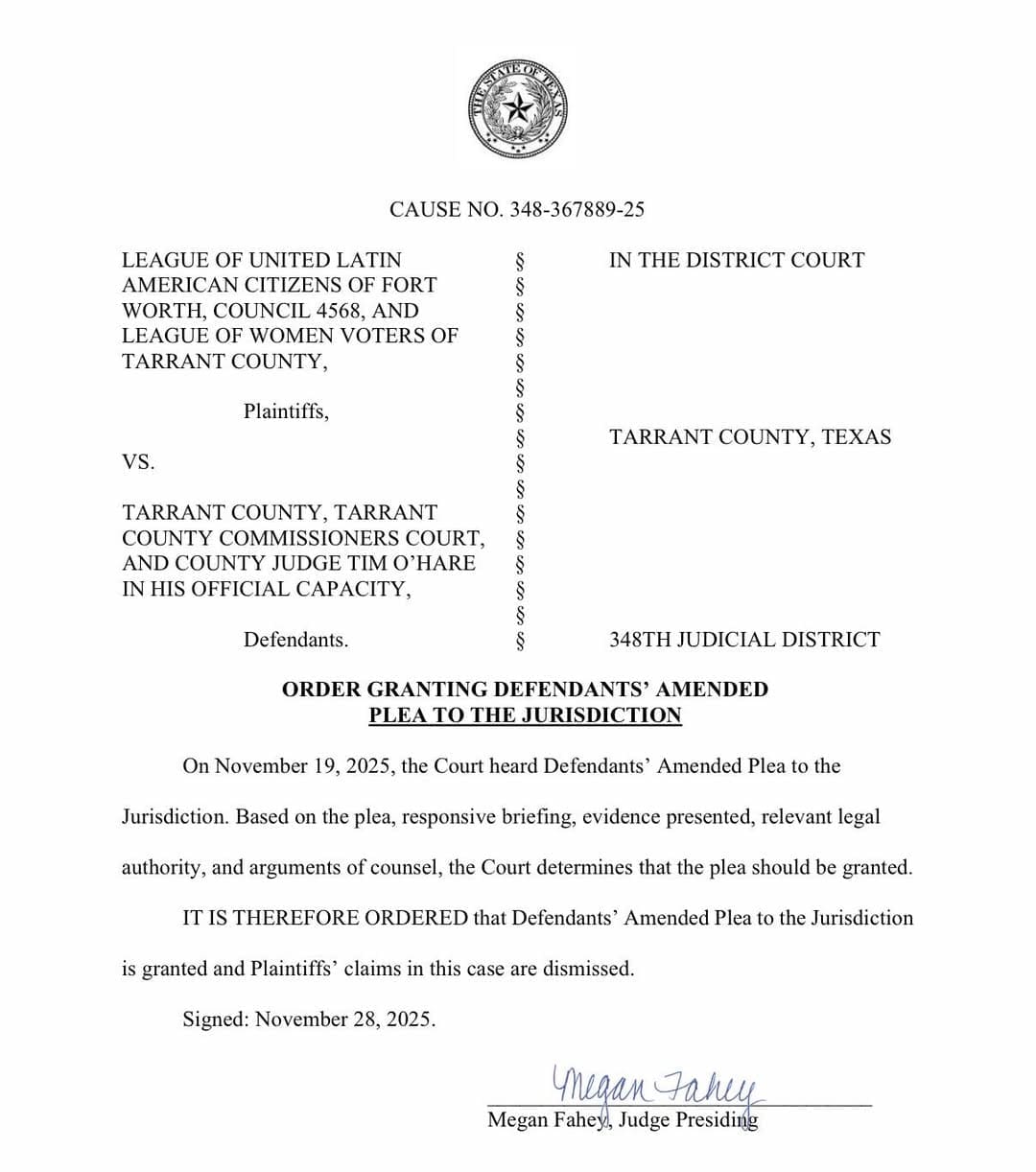 Simmons had previously announced plans to run for re-election in Tarrant County Commissioners Court Precinct 2, but that was before two challenges to the redistricting were dismissed—one dropped by the plaintiffs themselves—leaving the new map in place for 2026 and beyond.