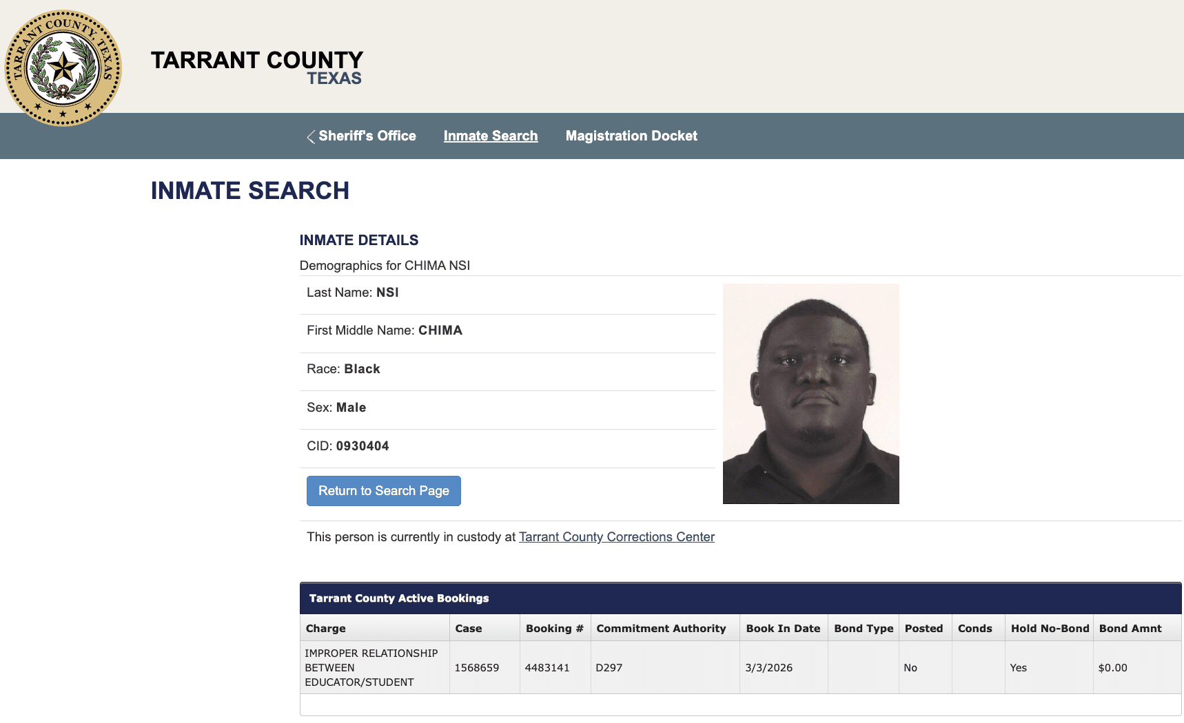 - Arlington ISD bus driver Chima Nsi, then 21, was arrested in 2018 on a charge of improper relationship between educator and student, after bus surveillance video caught him soliciting a 17-year-old male student for sex. Nsi was released on probation, but he was arrested last month and is now being held without bond in the Tarrant County Jail.