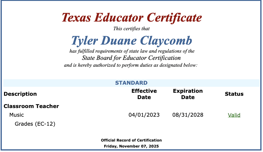 Tyler Duane Claycomb was an associate band director at Harker Heights High School in Killeen ISD.