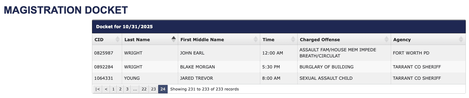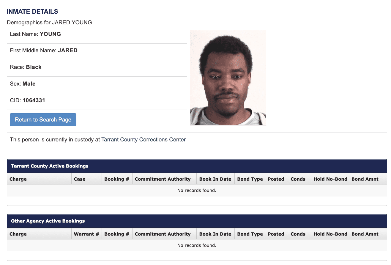 He was booked into the Tarrant County Jail and released Friday morning following a magistration hearing.