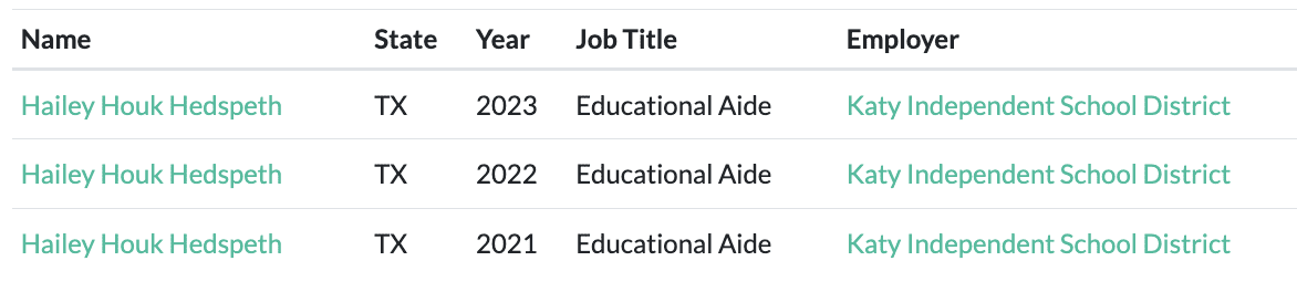 Online records show Hedspeth worked for the Katy Independent School District from 2021 through 2023, overlapping the time of her alleged sexual abuse of the children.