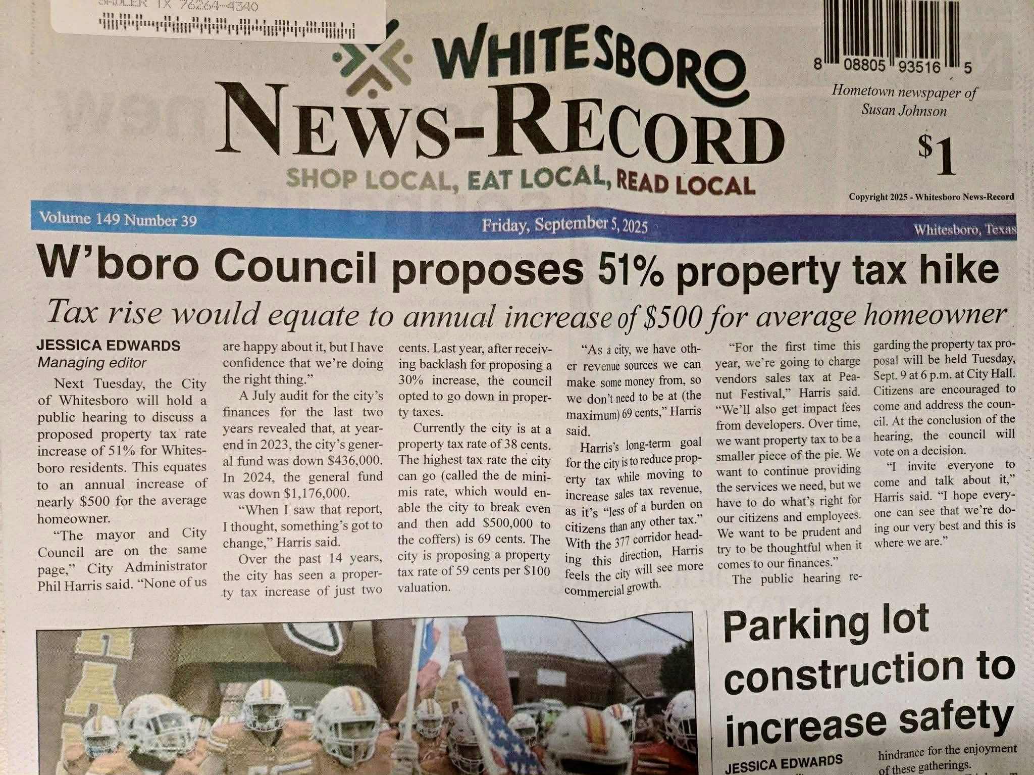 City Administrator Phil Harris told the Whitesboro News-Record that the mayor and city council members are “on the same page” about the tax increase.