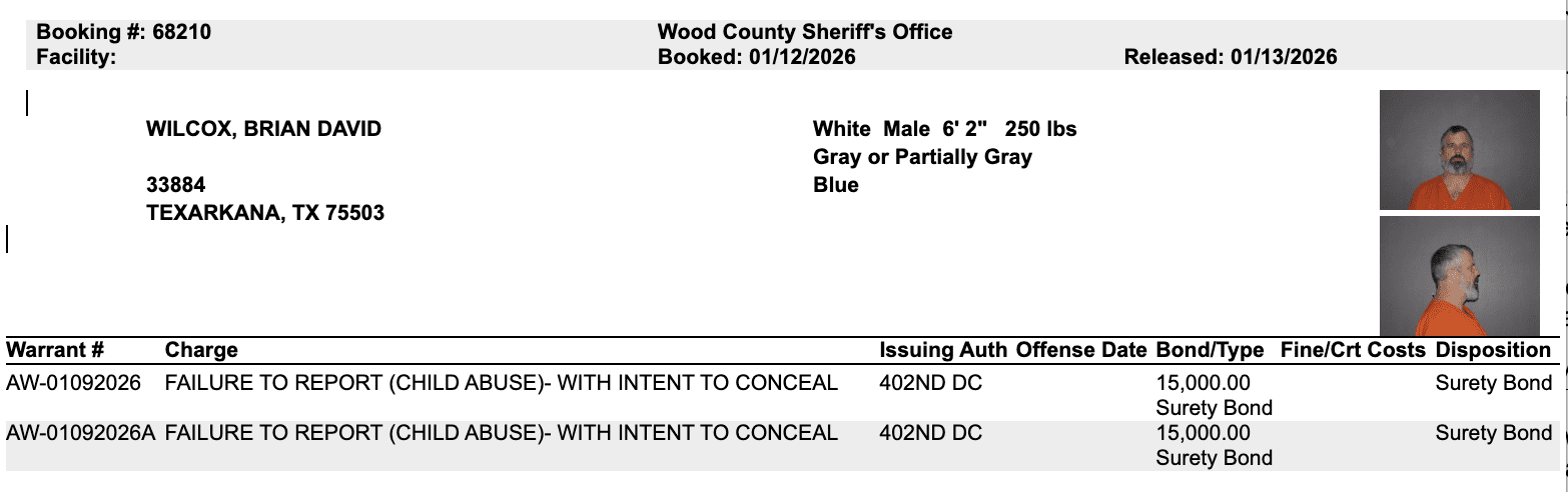 Wilcox’s wife Ashley Ayres Wilcox, 52, was also reportedly arrested in Bowie County and charged with failure to report child abuse. She worked for the district as a speech pathologist through the summer of 2025.
