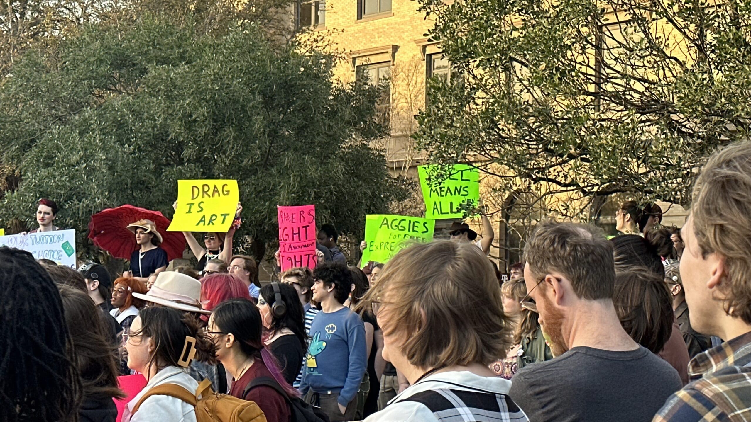 “[Drag queens] are a vital part of our culture, and I think suppressing them because you’re afraid of them is way more disrespectful to Aggie values,” said one of the student protestors.