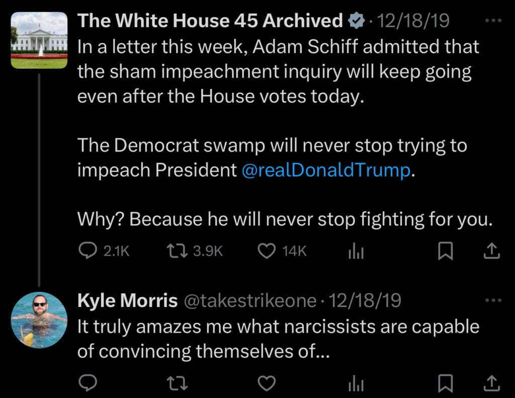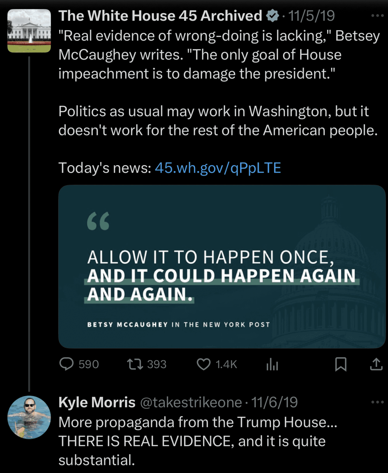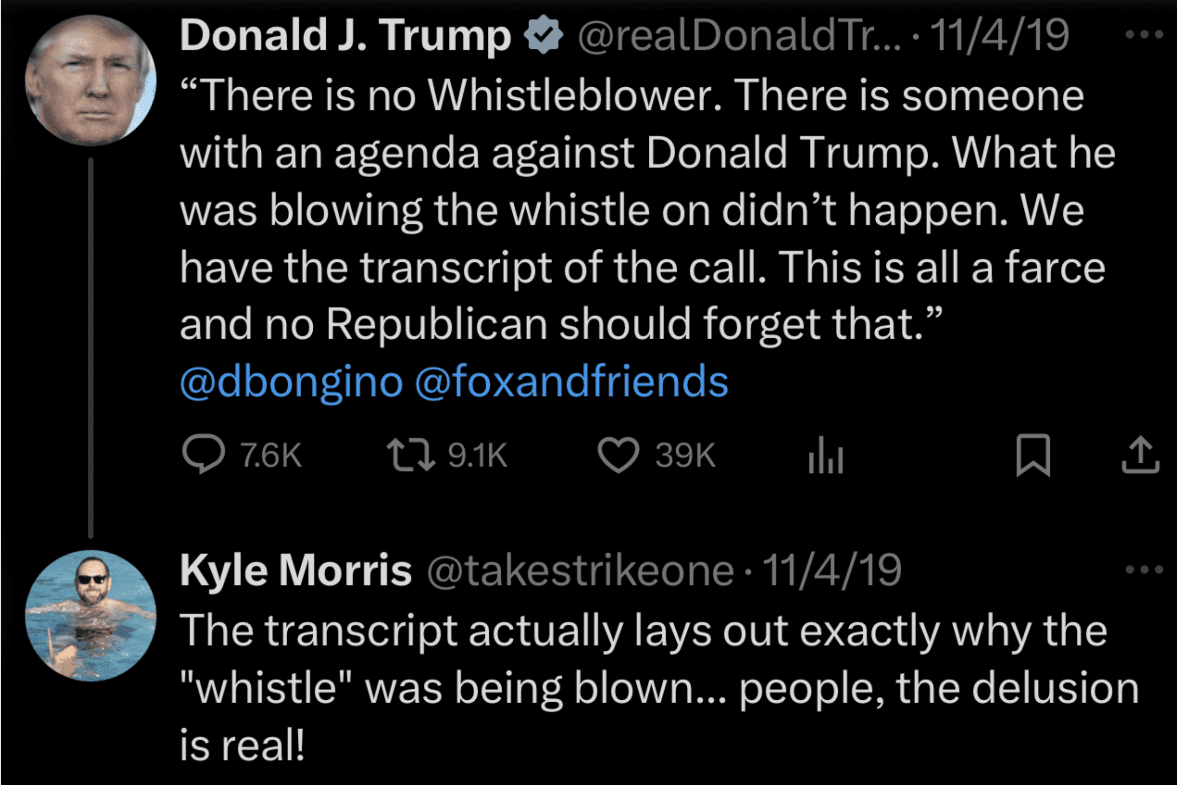 Texas Scorecard reviewed the posts on Morris’ X account, which was started in 2015. Beginning in 2019, the posts took on a pointed edge, covering some of the most contentious political moments of the Trump presidency. They include Morris’ take on the impeachment proceedings, the COVID-19 response, and the 2020 election.