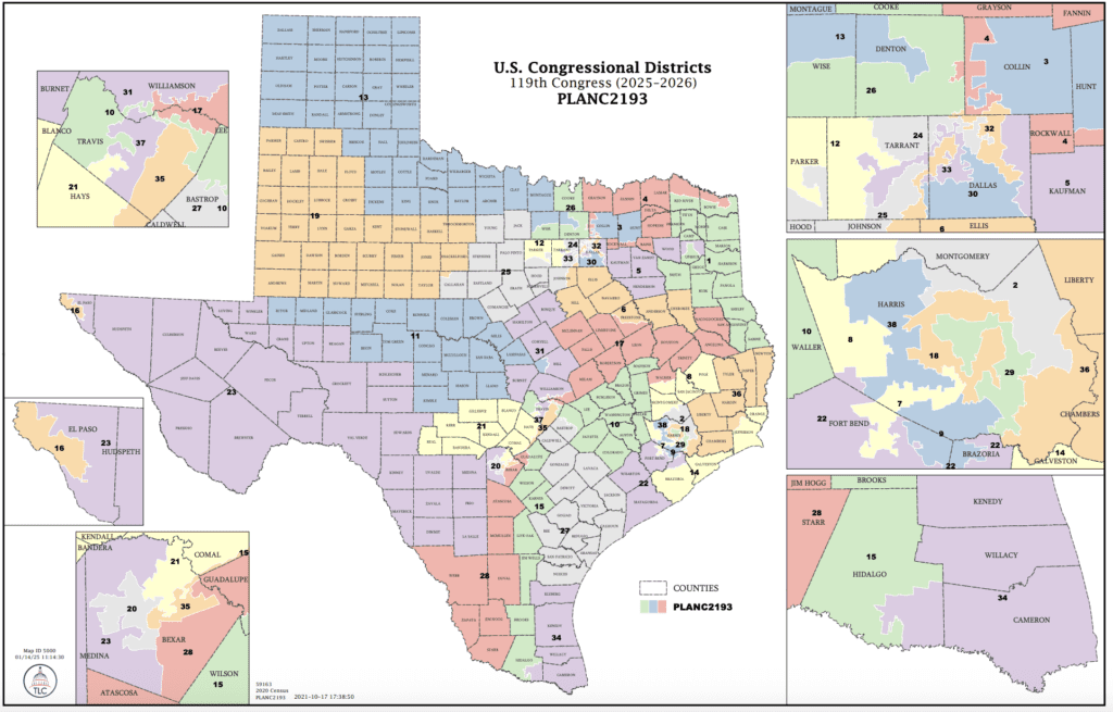 Starting in late 2024, Republican Party leaders at the federal and state levels began encouraging lawmakers to consider redrawing Texas’ congressional maps in the wake of the Galveston County win, which upheld partisan-drawn districts and rejected coalition districts.