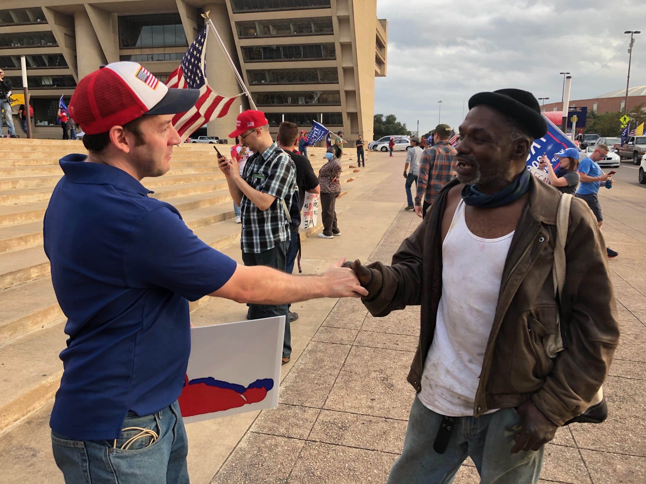 In Dallas on Saturday, citizens came together in front of city hall and proceeded to march around the city, chanting “Stop the steal!” and “Four more years!”